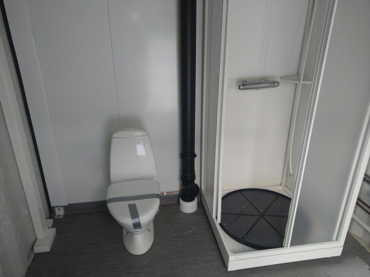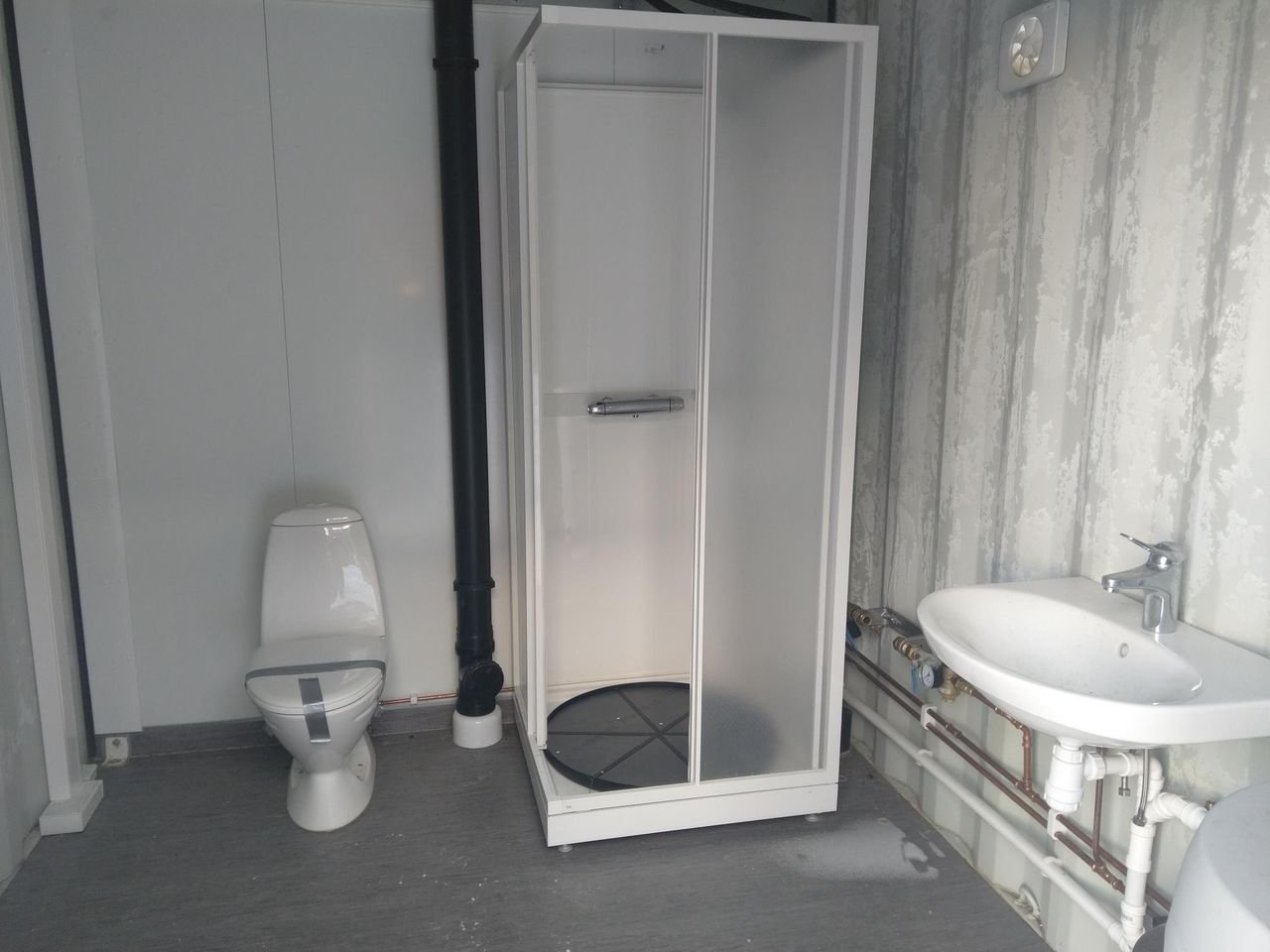 Este contenedor de 45 pies aislado y equipado con baño es perfecto para proyectos temporales o como espacio de trabajo en entornos donde es esencial tener instalaciones sanitarias y un ambiente protegido del frío.